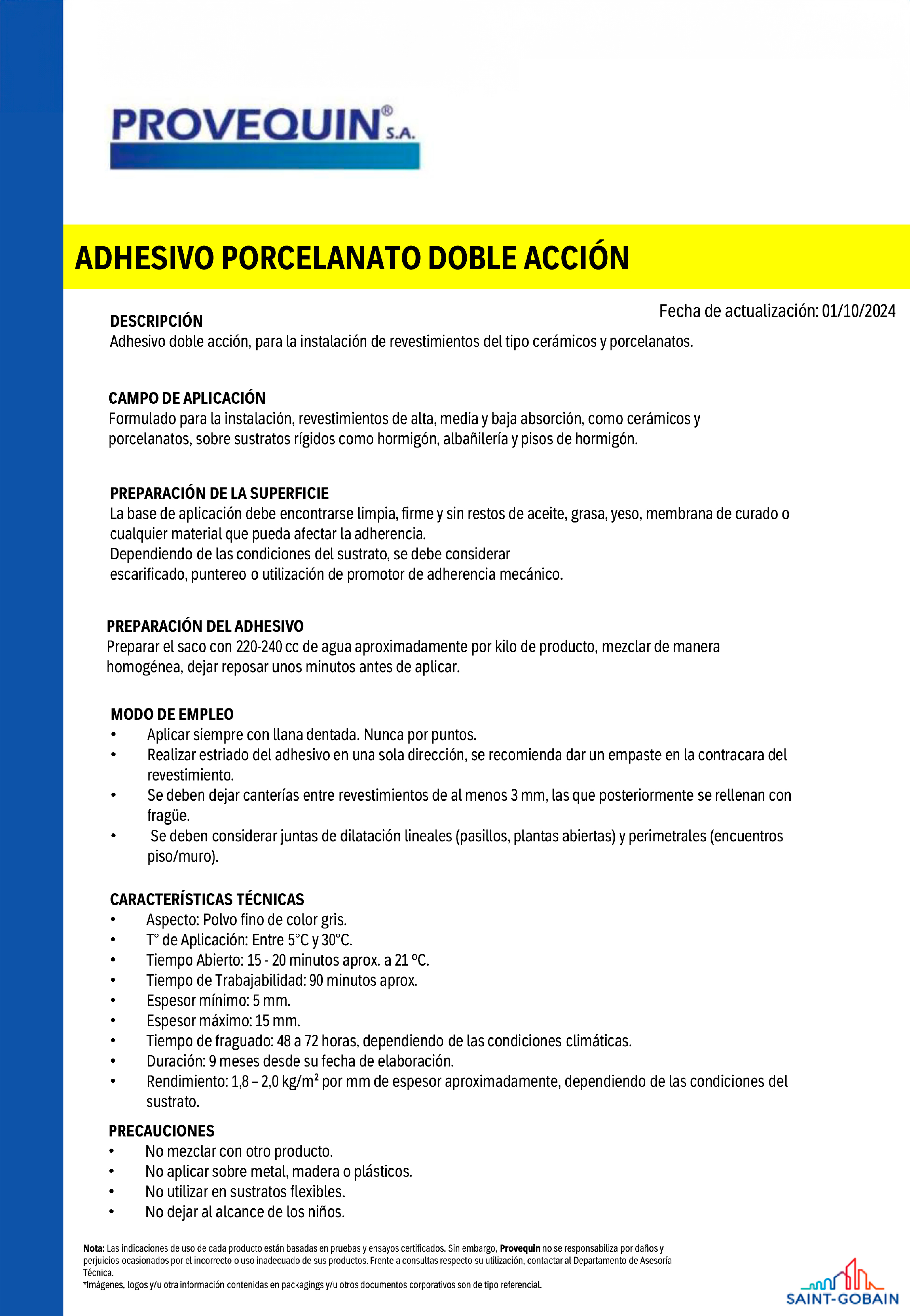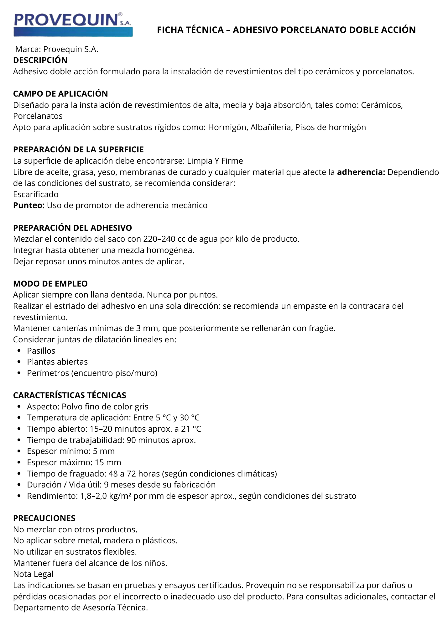 Adhesivo Porcelanato DOBLE ACCIÓN 25Kg - PROVEQUIN (Weber) Stock por sucursal Stock por sucursal $ 8.390 cantidad Agregar al carro Encargar