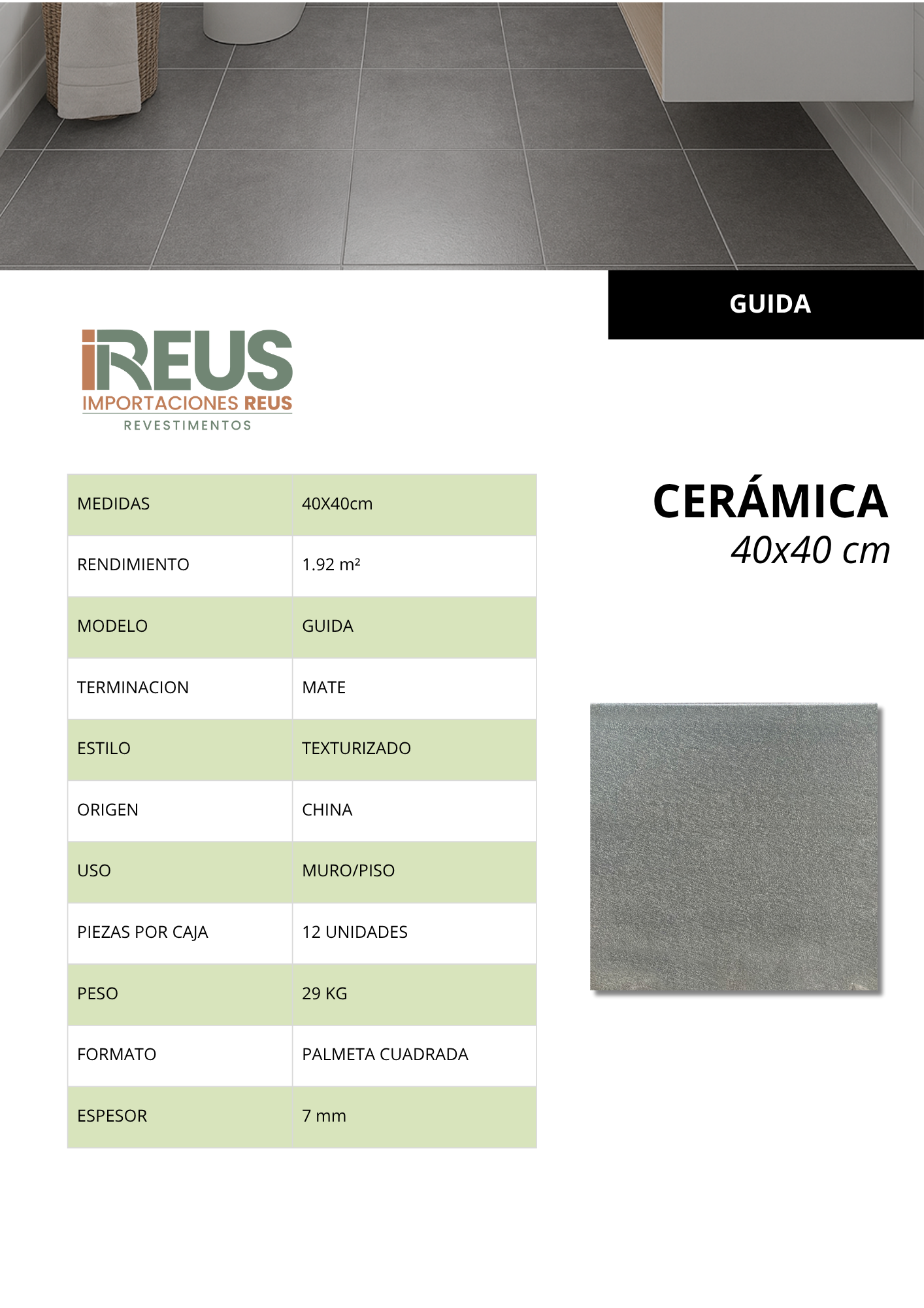 CERAMICA 40X40cm $6.990xm² - GUIDA Stock por sucursal Stock por sucursal $ 13.421 Textura Escoge Textura Esmaltado Formato Escoge Formato 40x40 Estilo Escoge Estilo Piedra cantidad Agregar al carro Encargar