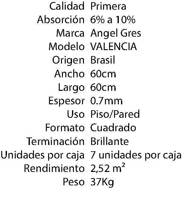Cerámica 60x60cm $6.990 xm² c/iva - VALENCIA Stock por sucursal Stock por sucursal $ 17.615 cantidad Agregar al carro Encargar Imágenes referenciales, los colores pueden variar según la configuración de cada pantalla.