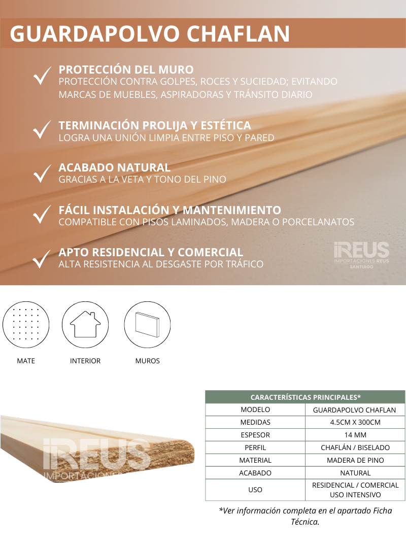 Guardapolvo Chaflan / Canteria Pino 14X45X3000 Stock por sucursal Stock por sucursal $ 2.590 cantidad Agregar al carro Encargar Imágenes referenciales: los colores pueden variar según la configuración de cada pantalla.
