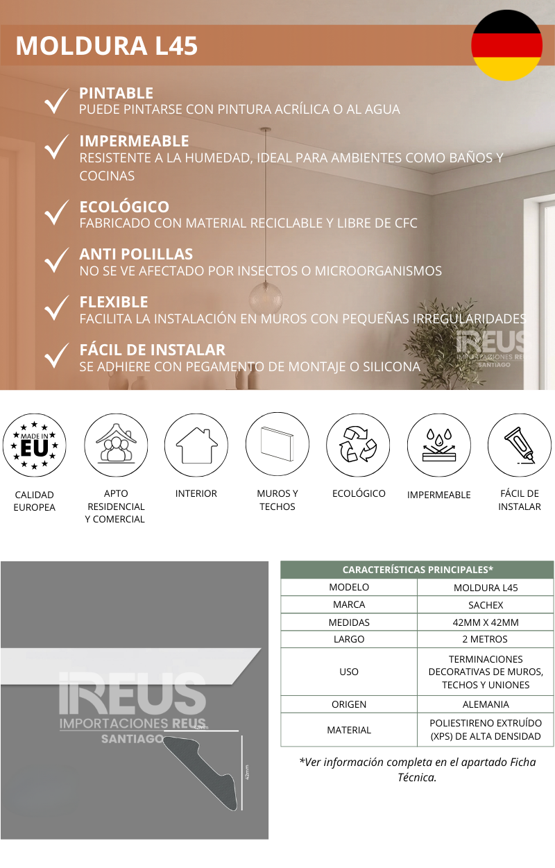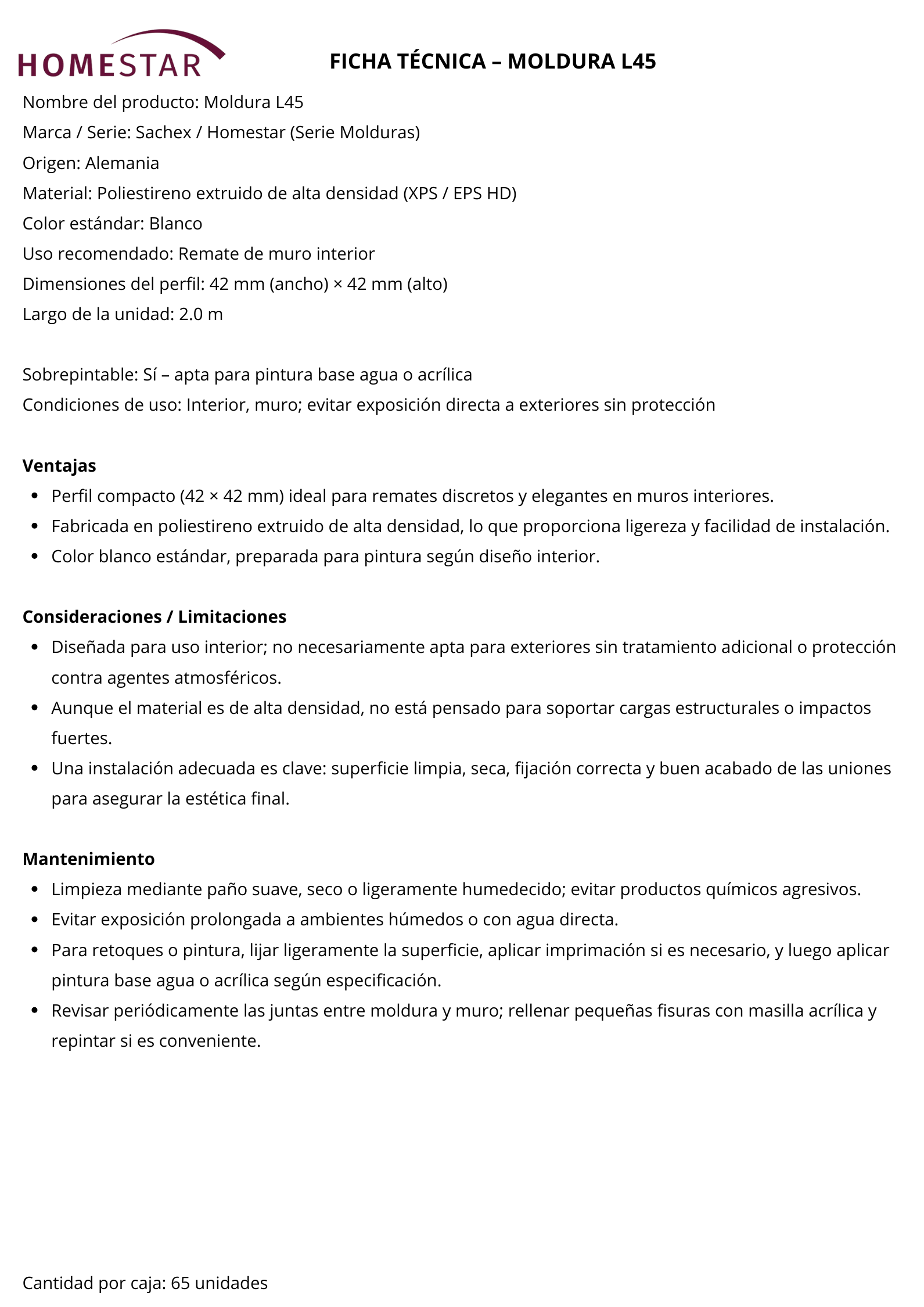 Moldura EPS extruído L45 Stock por sucursal Stock por sucursal $ 2.263 cantidad Agregar al carro Encargar Imágenes referenciales: los colores pueden variar según la configuración de cada pantalla.