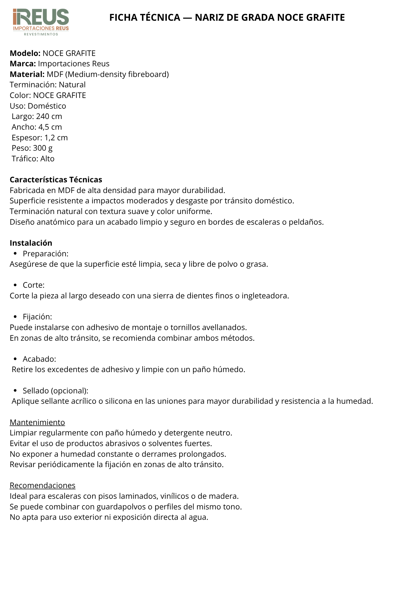 Nariz de Grada Noce Grafite Perser Stock por sucursal Stock por sucursal $ 8.990 cantidad Agregar al carro Encargar
