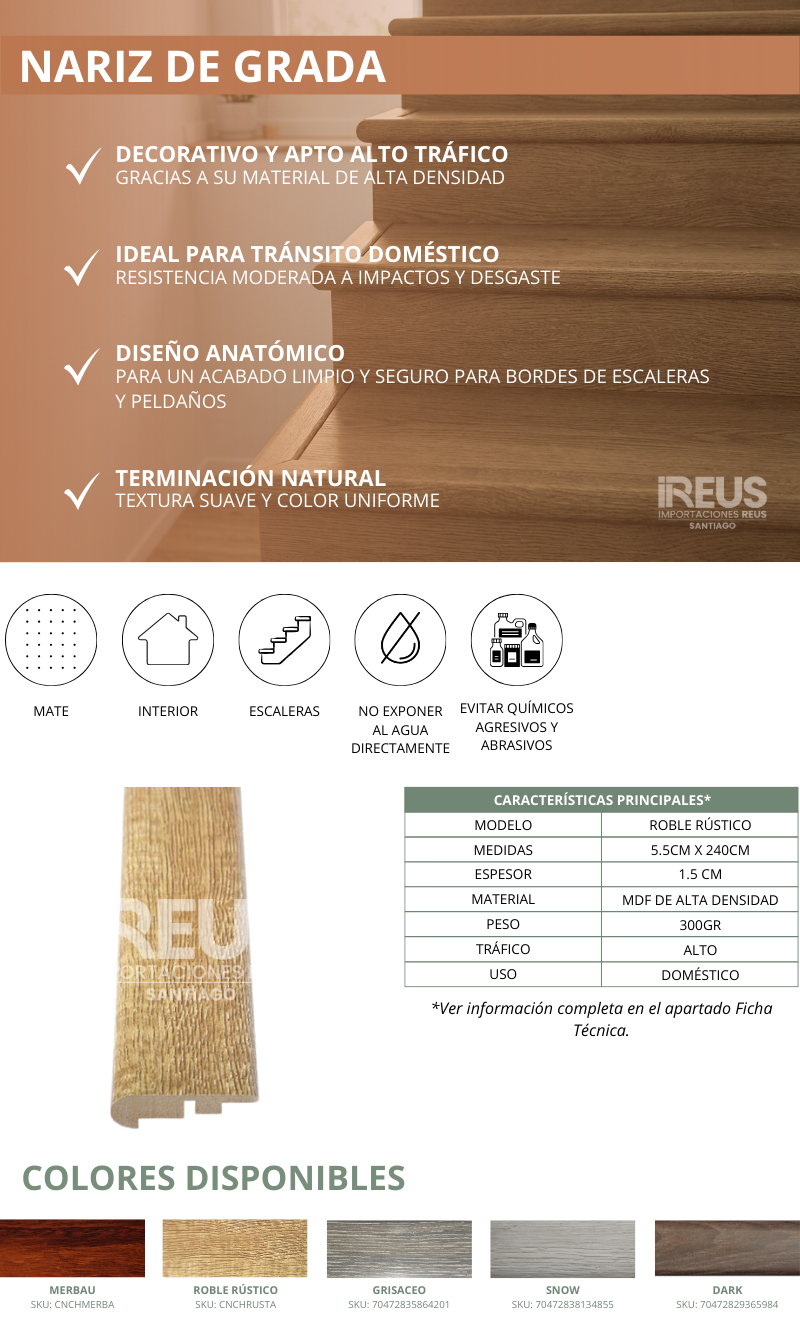 Nariz de grada - Roble Rústico Stock por sucursal Stock por sucursal $ 8.990 cantidad Agregar al carro Encargar Imágenes referenciales: los colores pueden variar según la configuración de cada pantalla.