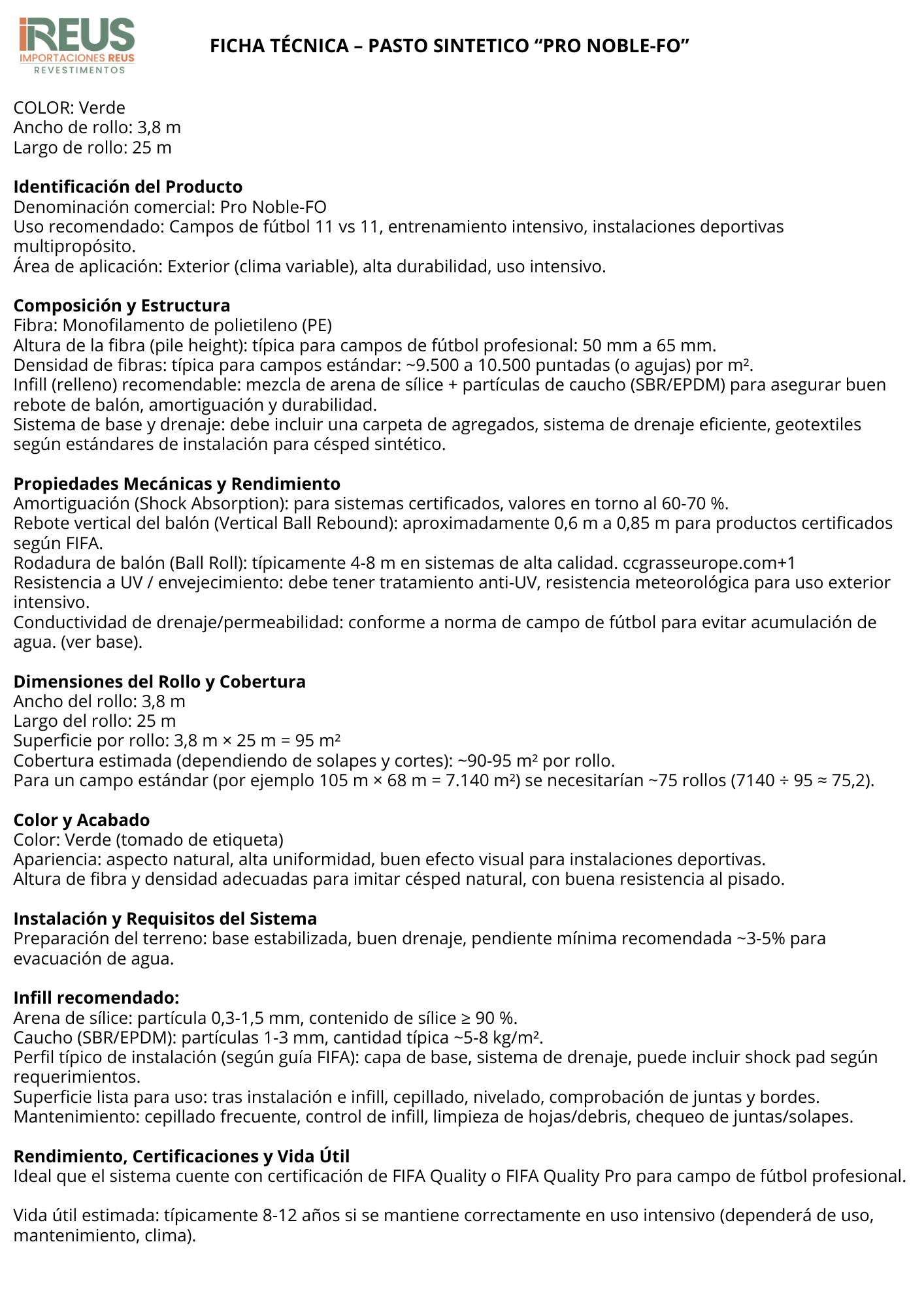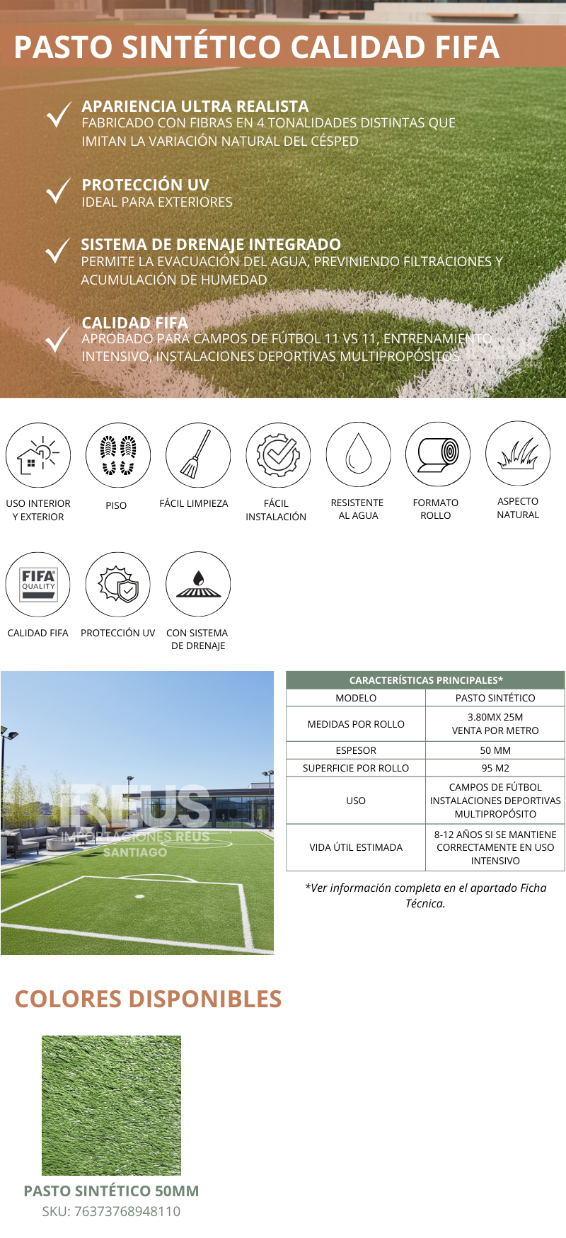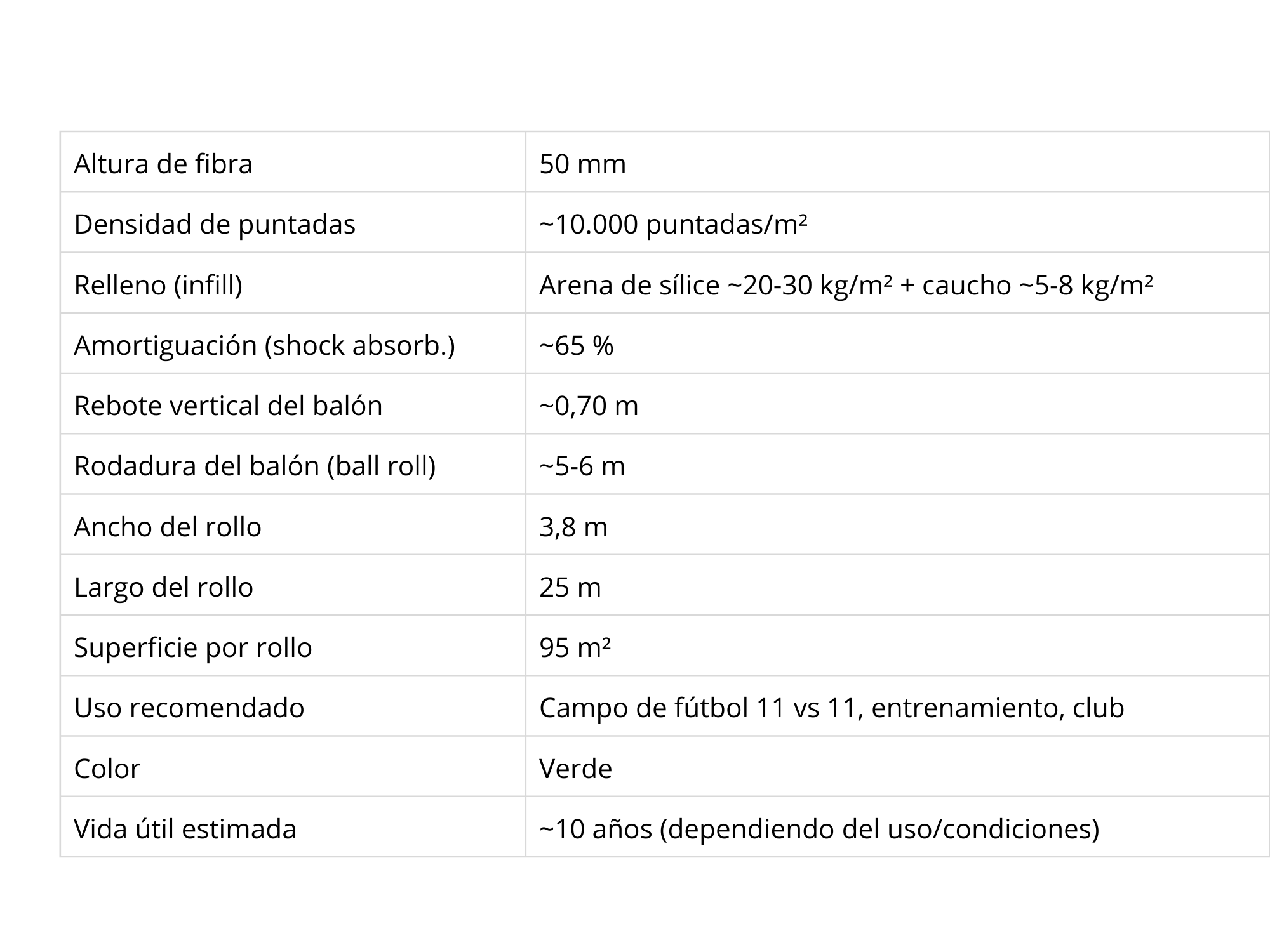 Pasto Sintético para Futbol FIFA - PRO Noble 50mm $9.990xm² (3.8m/de ancho)
