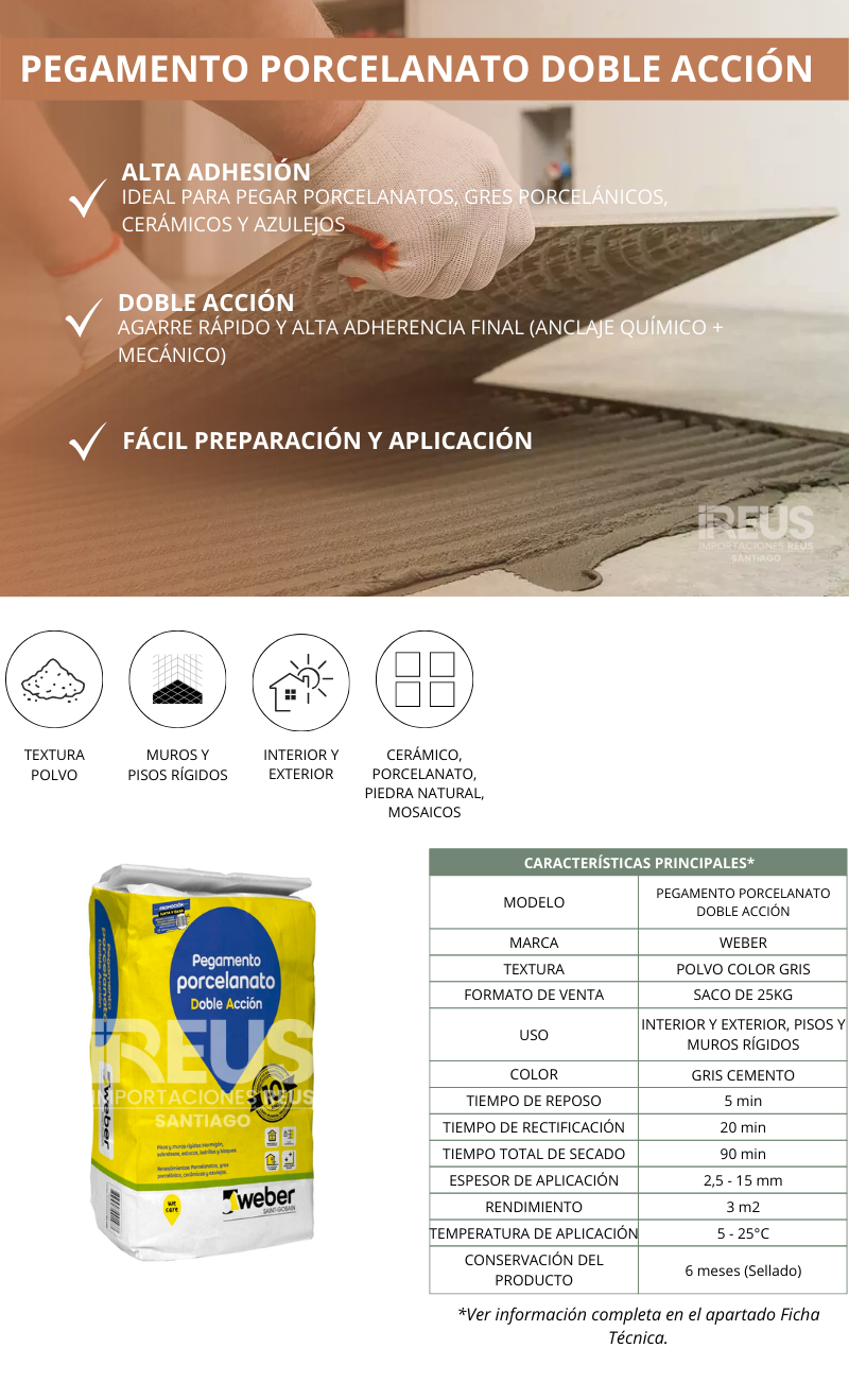 Pegamento WEBER Doble Acción (D.A) 25 Kg2