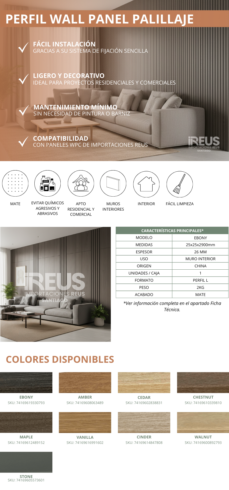 Perfil Wall Panel Palillaje 25x25x2900mm - EBONY Stock por sucursal Stock por sucursal $ 4.990 cantidad Agregar al carro Encargar Imágenes referenciales: los colores pueden variar según la configuración de cada pantalla.