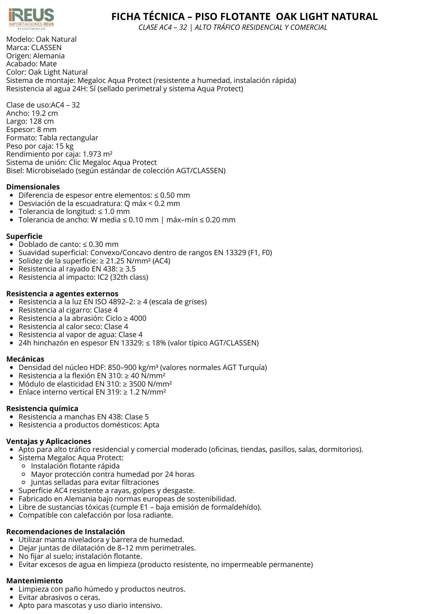 Piso Flotante Aqua Protect 128x19.2cm $13.990 m² c/iva - Oak Light Natural