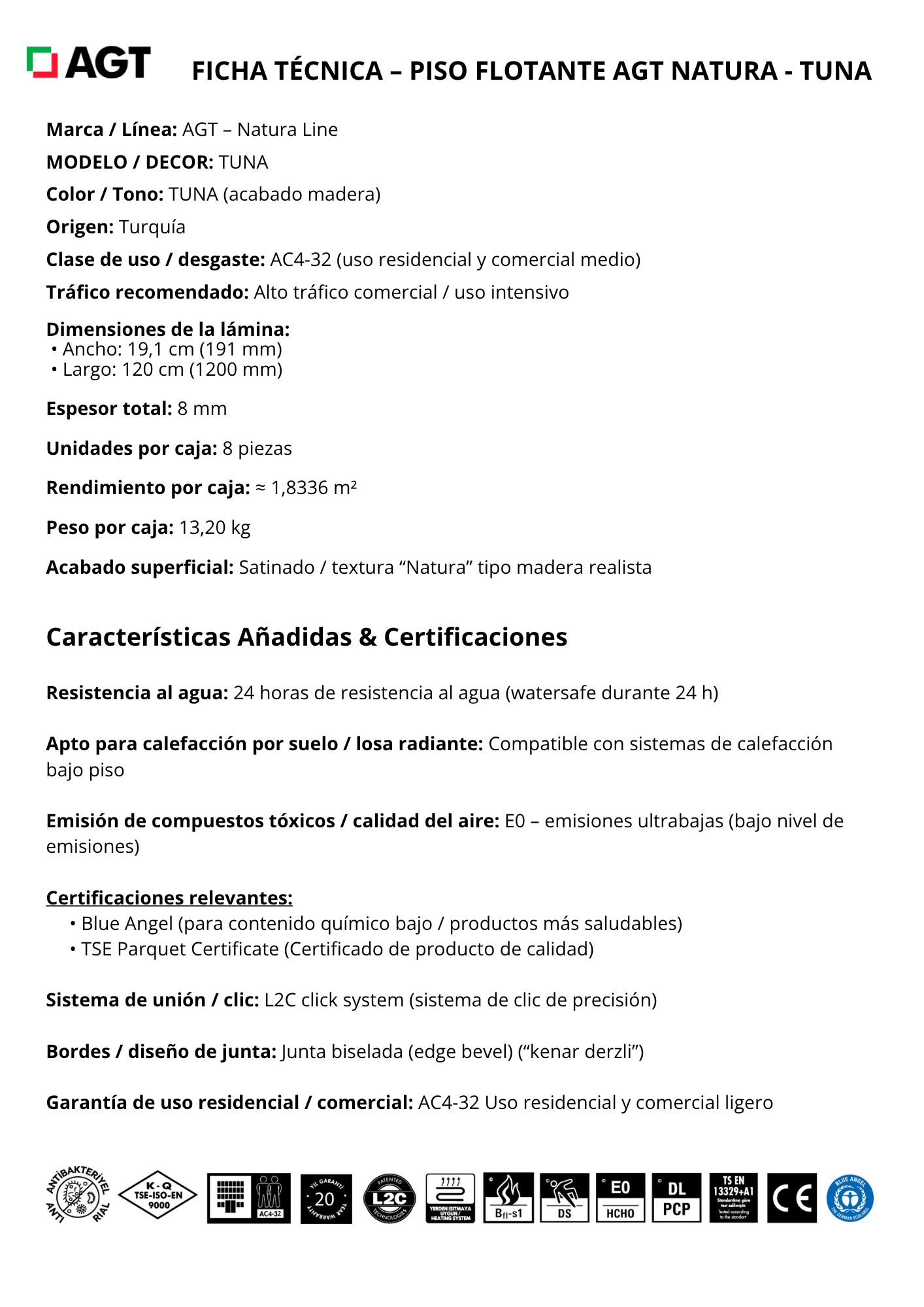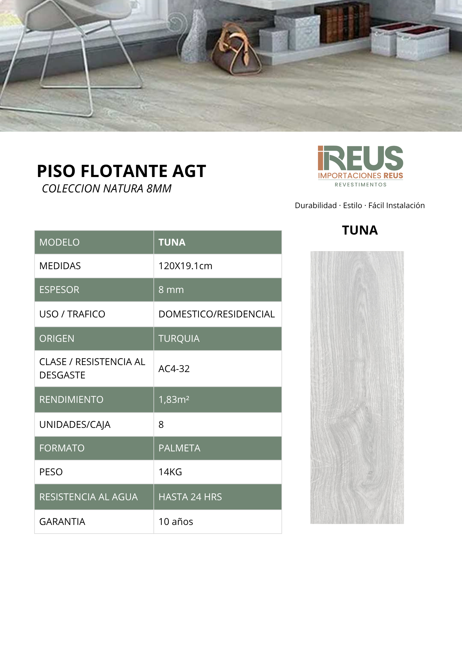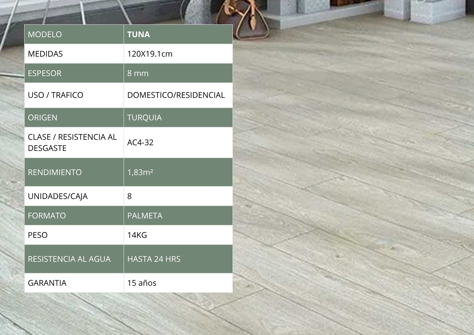 Piso Flotante Biselado120x19.1cm $10.990 m² c/iva - Tuna