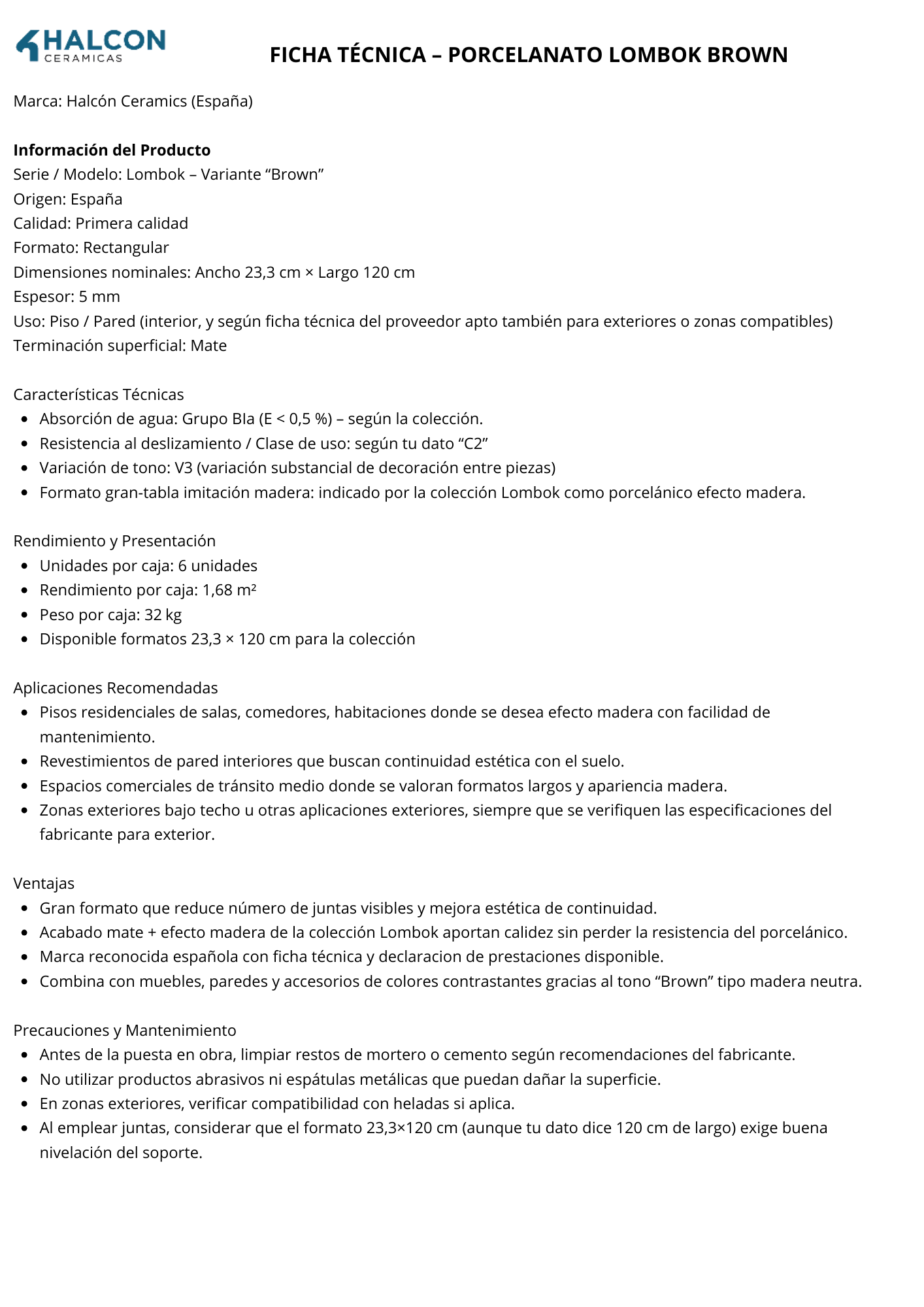 Porcelanato 23.3X120 $13.993xm² - LOMBOK BROWN Stock por sucursal Stock por sucursal $ 23.508 Estilo Escoge Estilo Madera Formato Escoge Formato 23.3x120 Textura Escoge Textura Antideslizante Porcelanato y Gres Escoge Porcelanato y Gres Porcelanato cantidad Agregar al carro Encargar