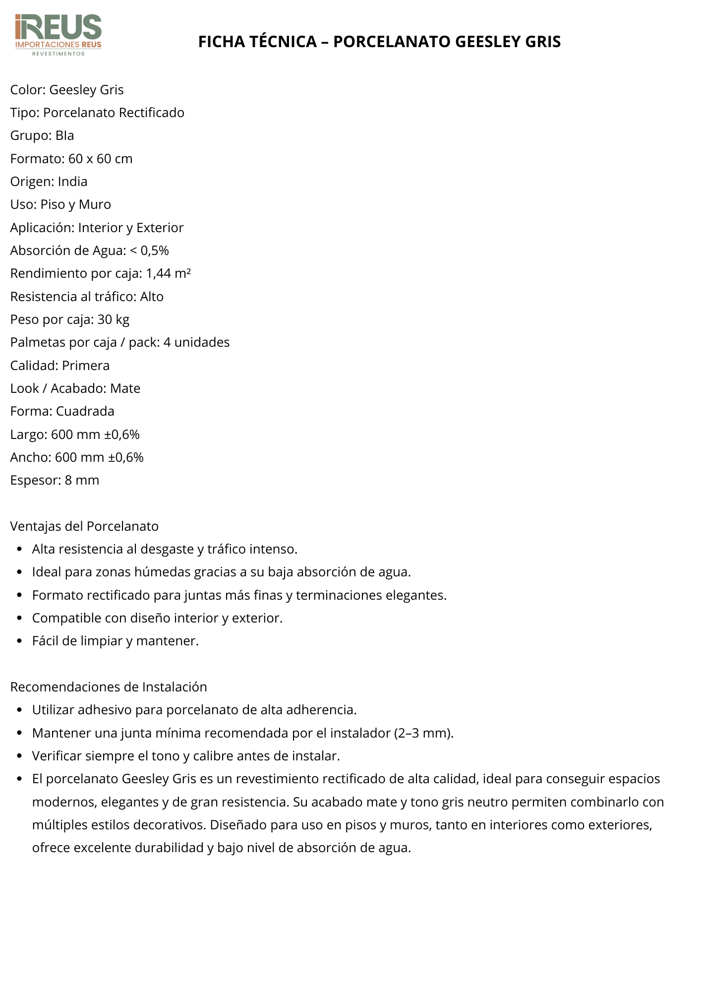 Porcelanato 60x60cm $9.990xm² c/iva - GEESLEY GRIS