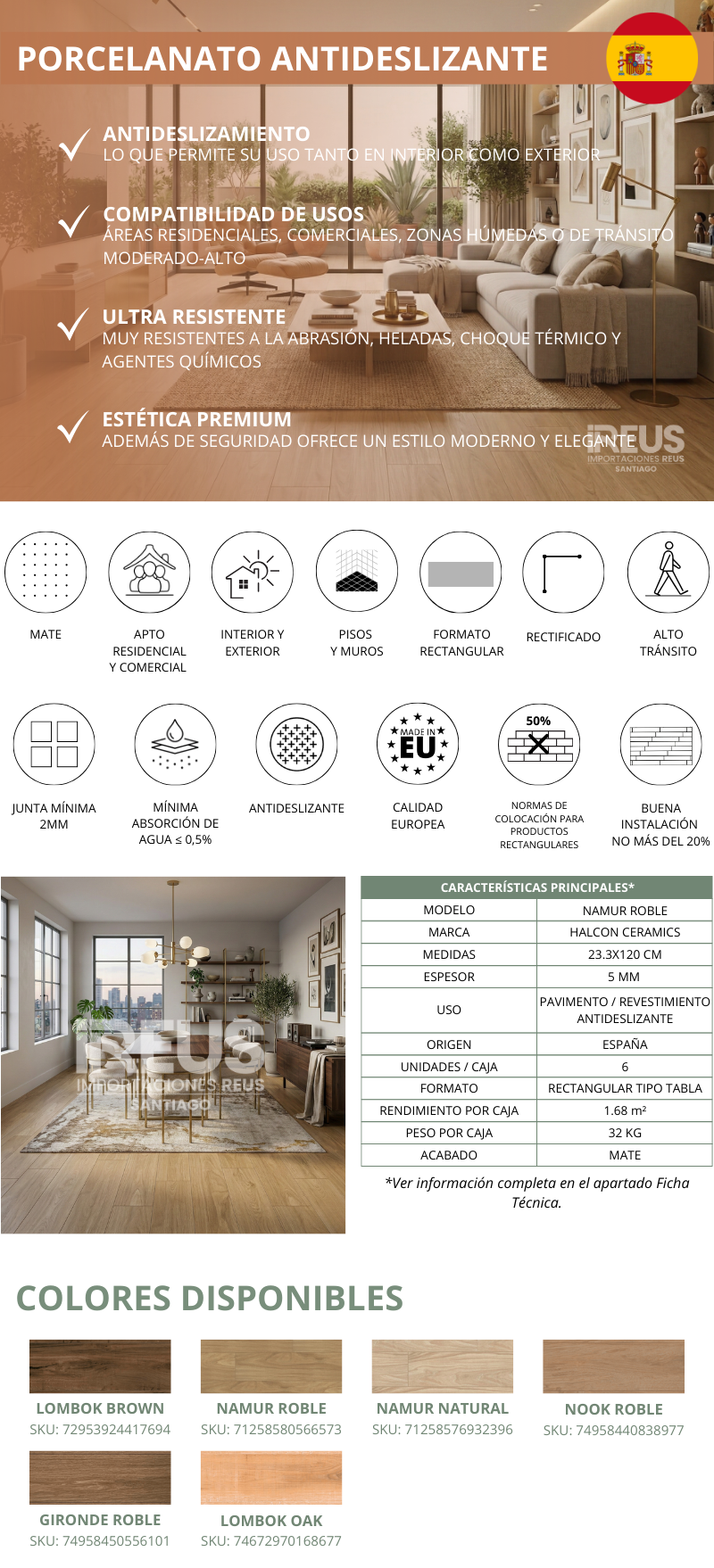 Porcelanato Antideslizante 23,3x120cm $19.990xm² c/iva - Namur Roble