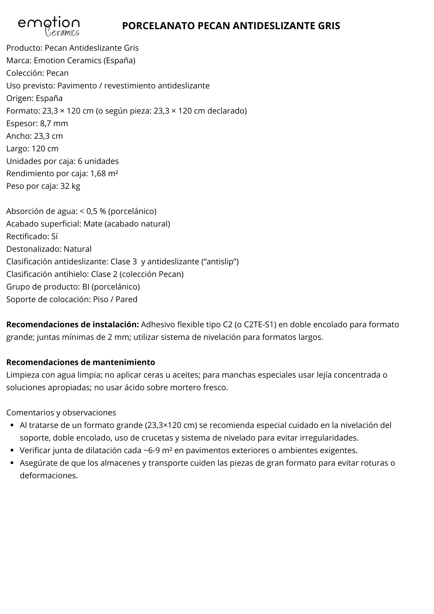 Porcelanato23.3x120cm $17.990 m² c/iva - Pecan Antideslizante Gris