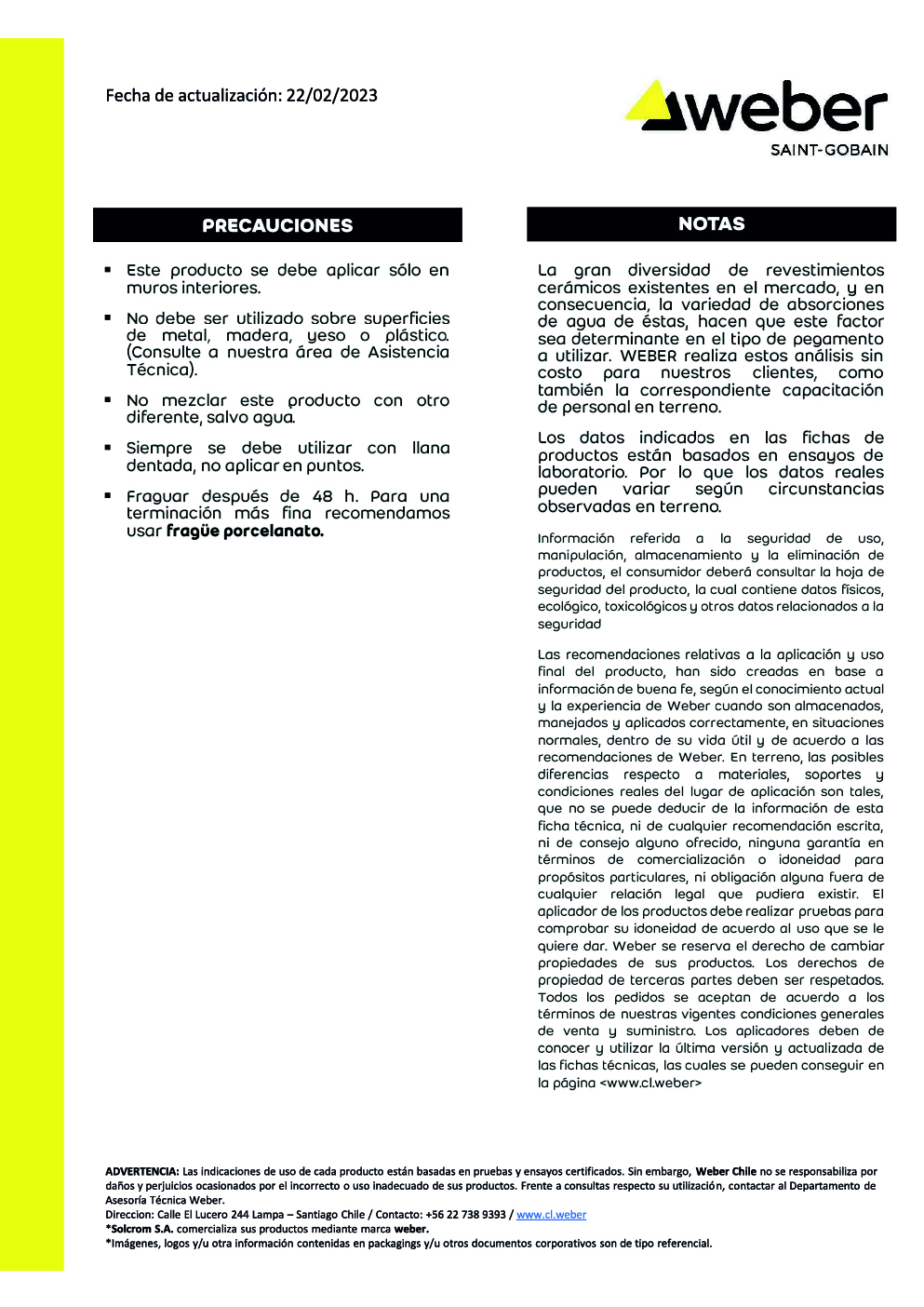 Pega sobre muros flexibles y rígidos: Fibrocemento (internit), yeso-cartón (volcanita), hormigón, estucos, ladrillos y bloques.