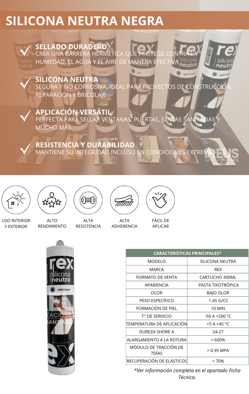 REX SILICONA NEUTRA NEGRA 300ML Stock por sucursal Stock por sucursal $ 3.390 cantidad Agregar al carro Encargar Imágenes referenciales: los colores pueden variar según la configuración de cada pantalla.