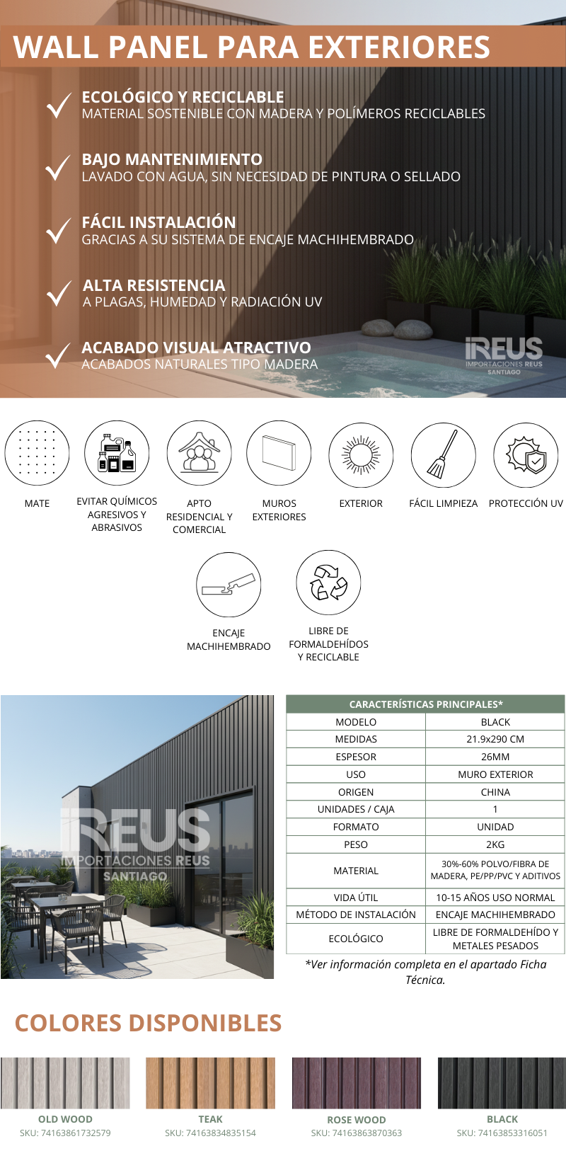 Wall Panel Exterior Cladding WPC 21.9x290cm x26mm - BLACK Stock por sucursal Stock por sucursal $ 14.990 cantidad Agregar al carro Encargar Imágenes referenciales: los colores pueden variar según la configuración de cada pantalla.
