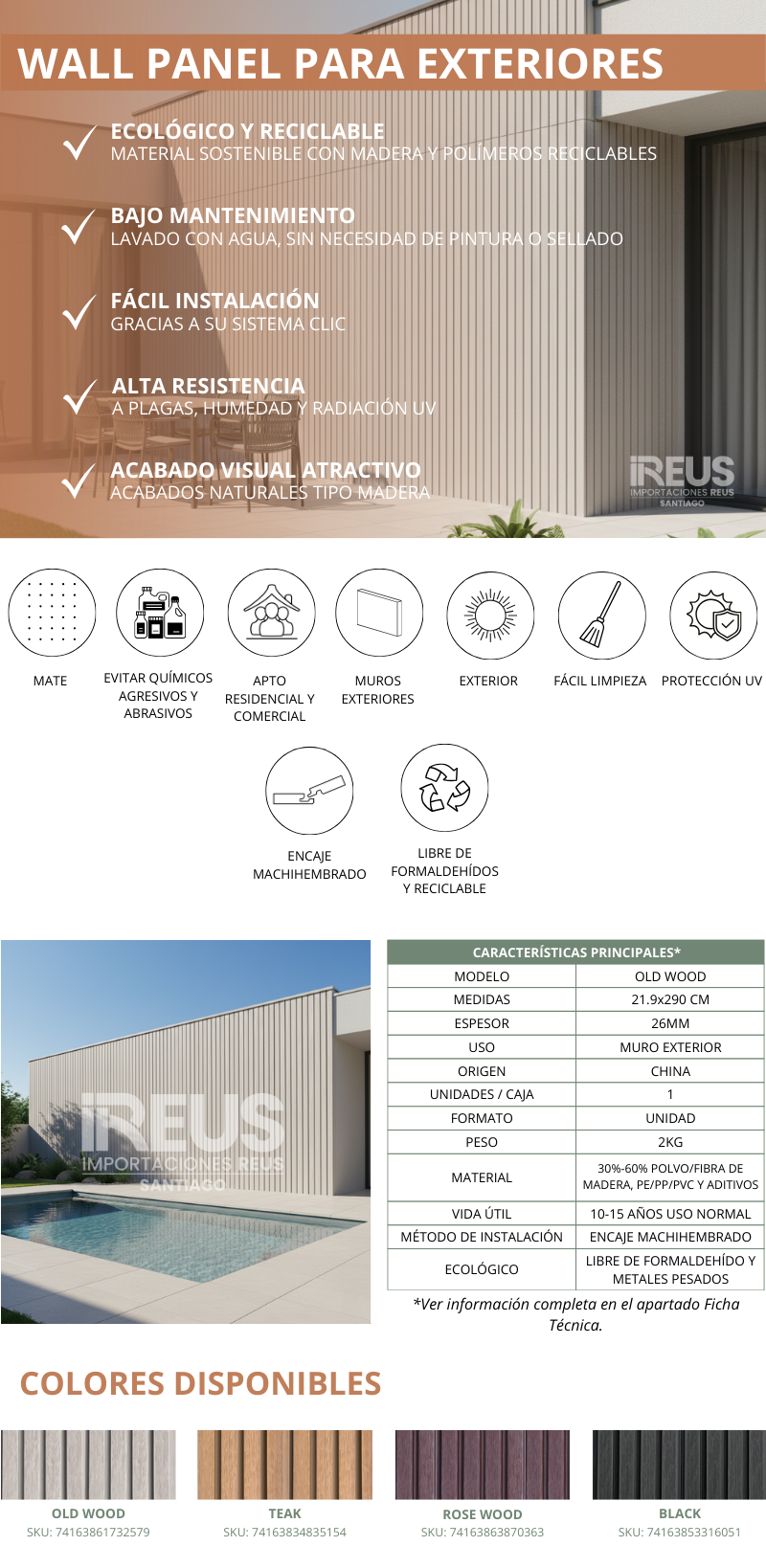 Wall Panel Exterior Cladding WPC 21.9x290cm x26mm - OLD WOOD