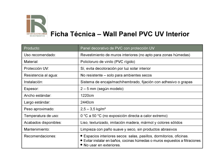 Wall Panel Decorativo con protección UV para Interiores: