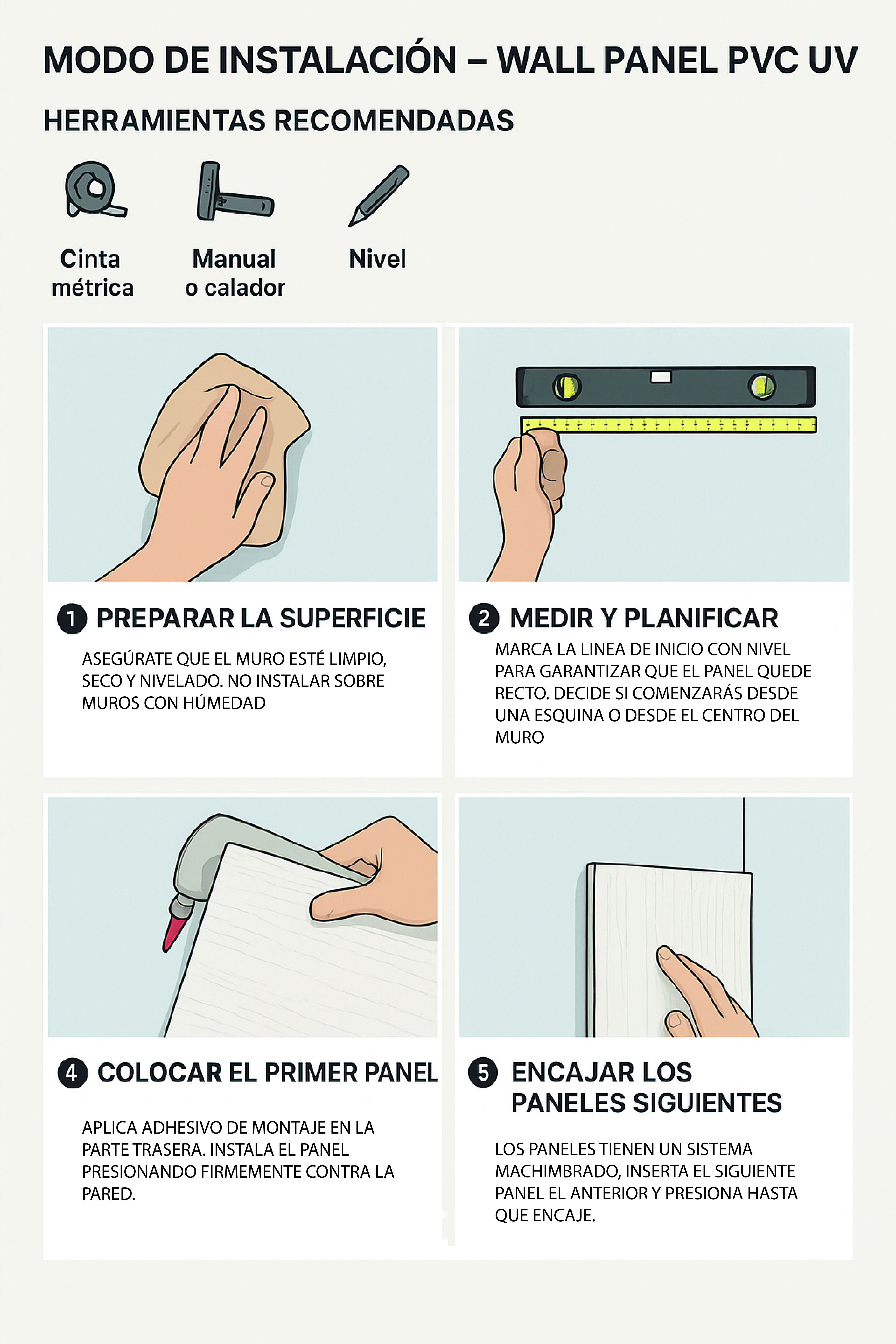🛠️ Modo de Instalación – Wall Panel PVC UV