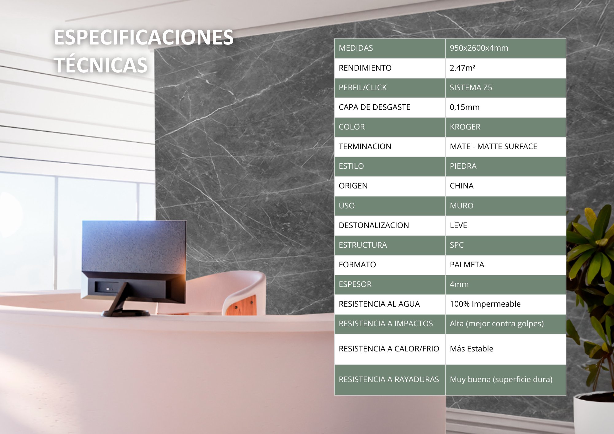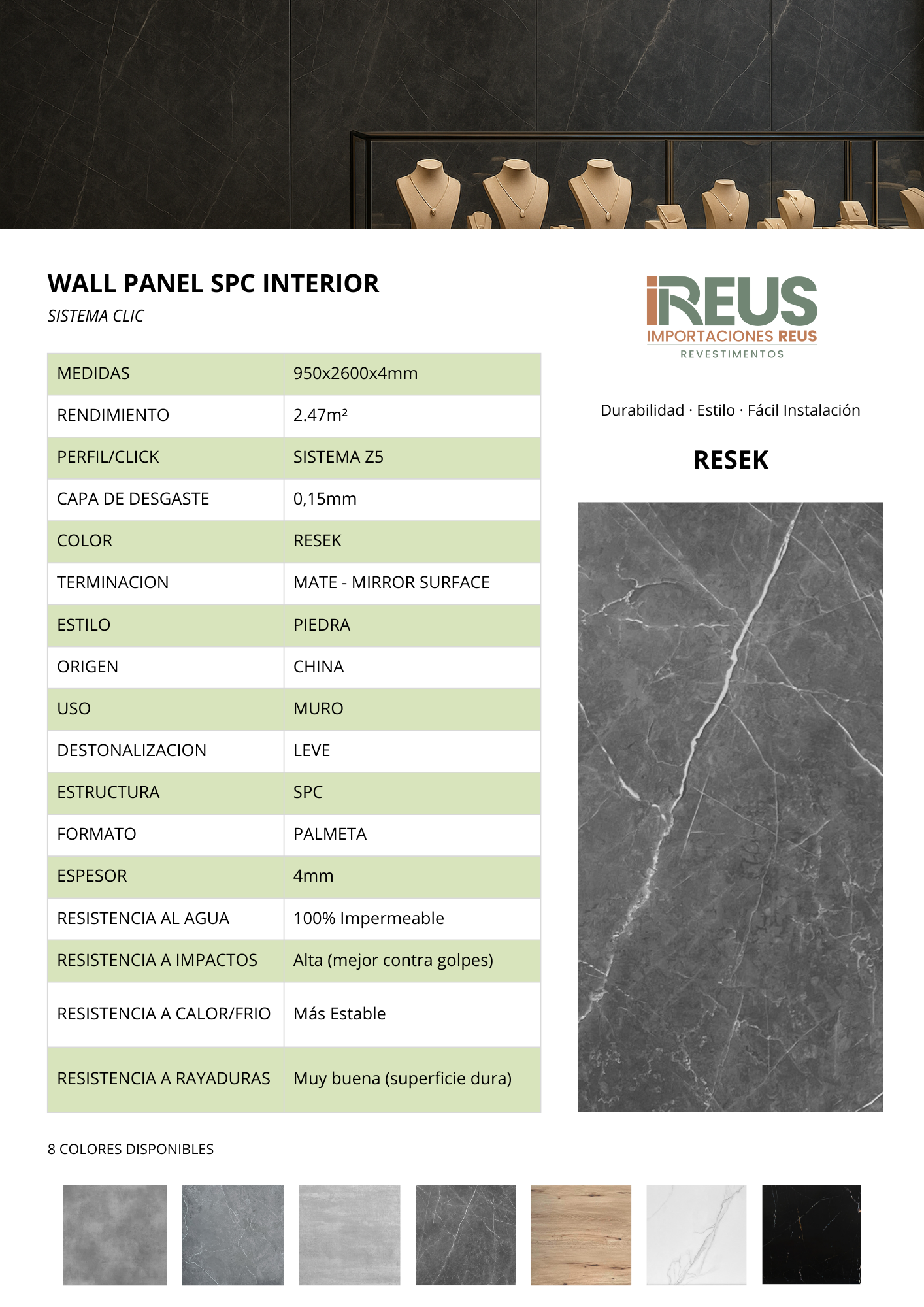 WALL PANEL SPC Interior 95x260cmx4mm $10.524xm² - RESEK